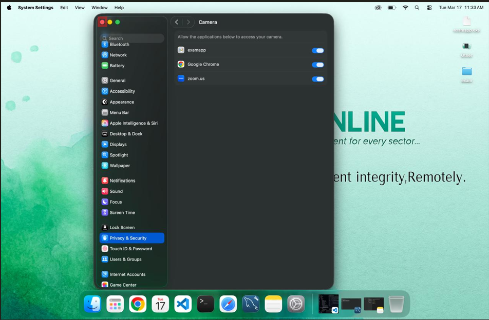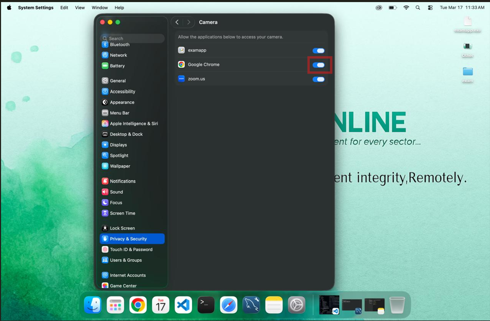 Use the following settings to select which applications are allowed to use the camera on your Mac.