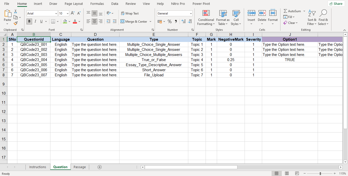 to enter the passage provided by the client in “PASSAGE GROUP” section if the type of Questions are
