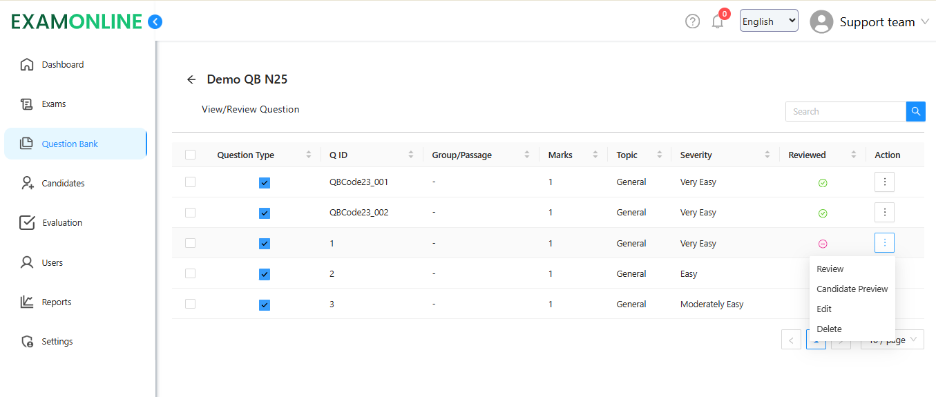 Select the third option “Question Bank” from the left side menu provided and click on “Create Question Bank” tab.