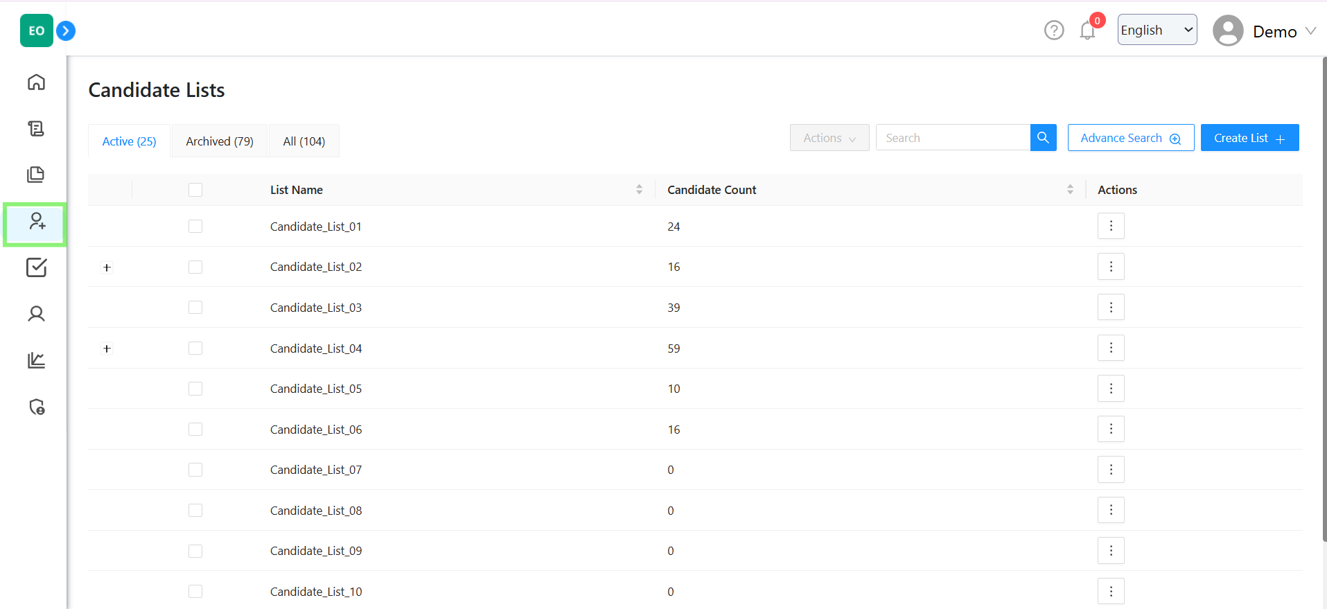 Step 1: Navigate to the Candidates Section Click on the "Candidates" icon in the left-hand navigation menu to access the candidates section. Step 2: Create a New List Click on the "Create List" button located at the top-right corner of the page. A ...