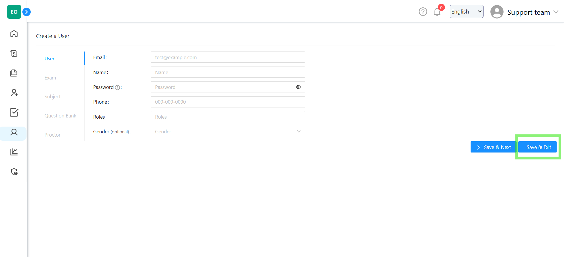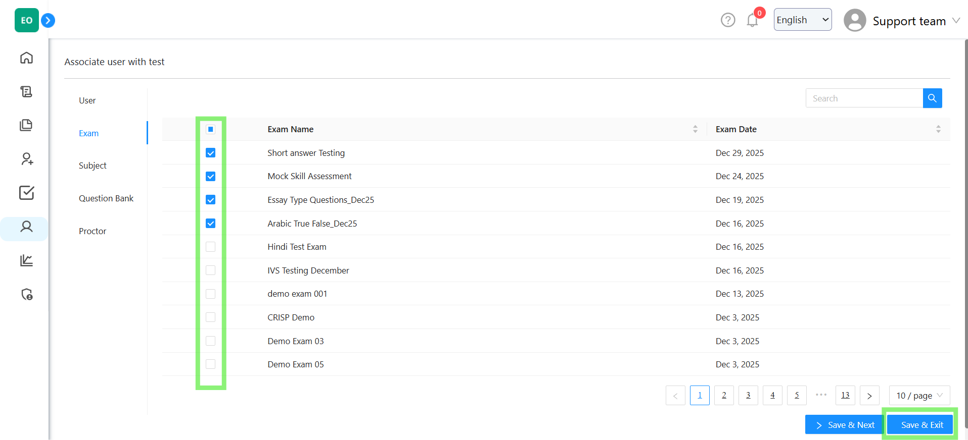 Step 4: Select the checkbox for the exam to which the proctor needs to be associated. Click on Save & Exit.