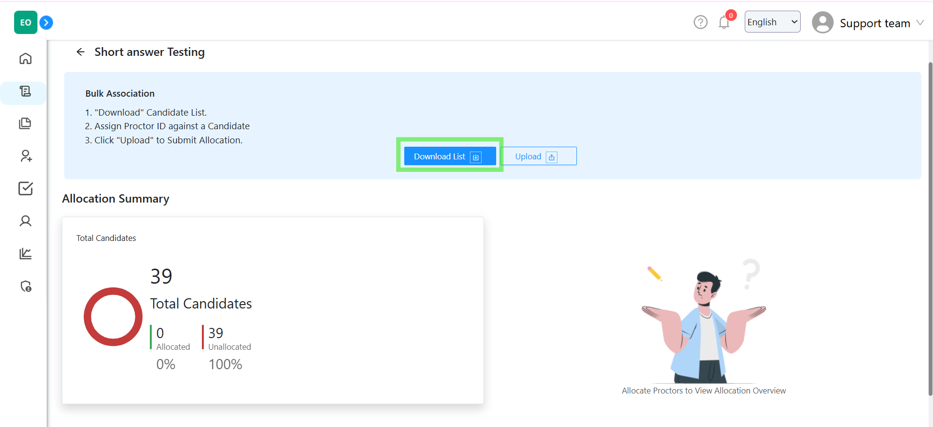 Step 12: After uploading, verify the allocation status on the same screen or from the dashboard. Ensure that all candidates are successfully allocated and no candidates remain unassigned.