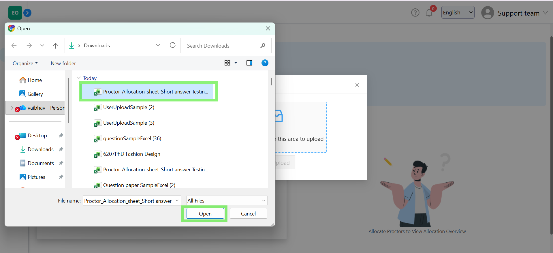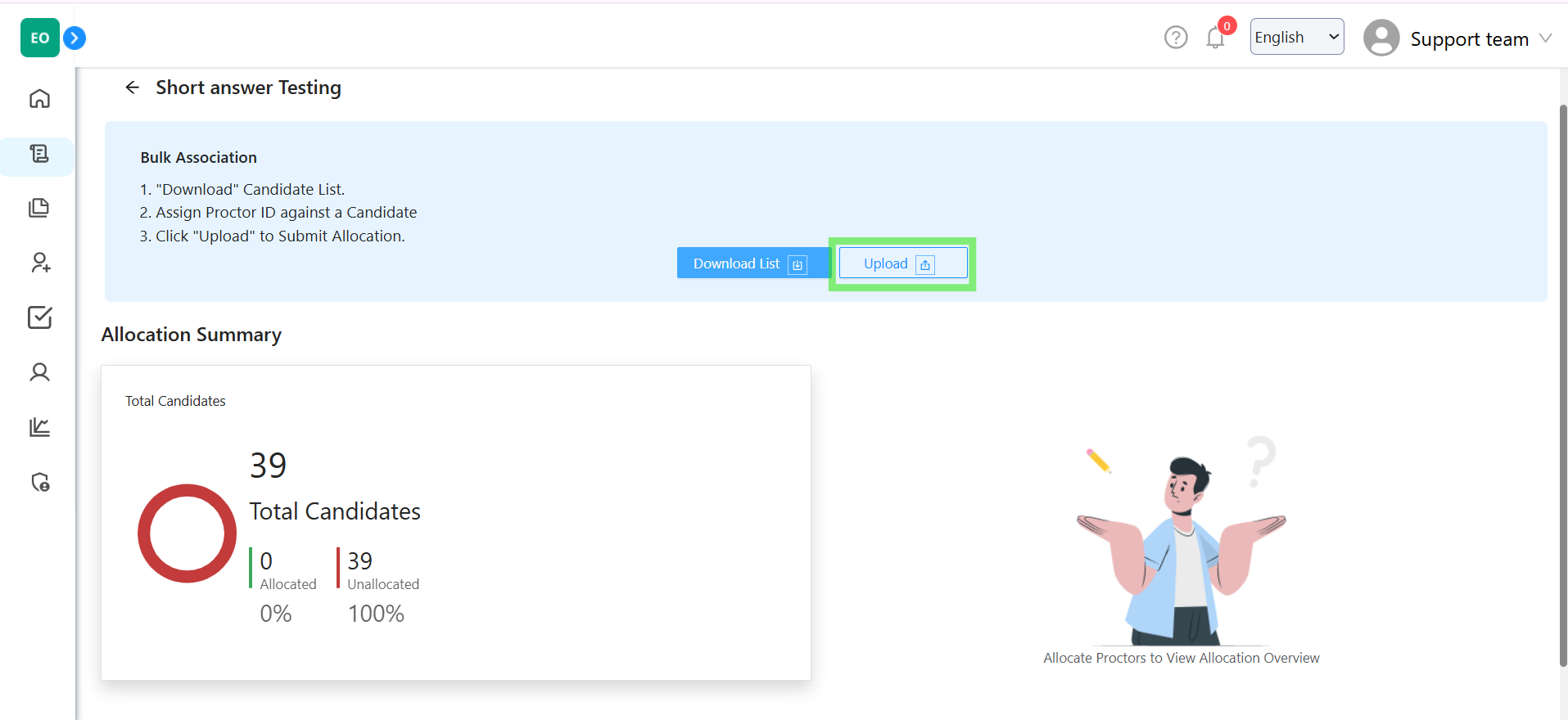 Step 10: Return to the Allocate Proctor screen in the portal, click on Upload